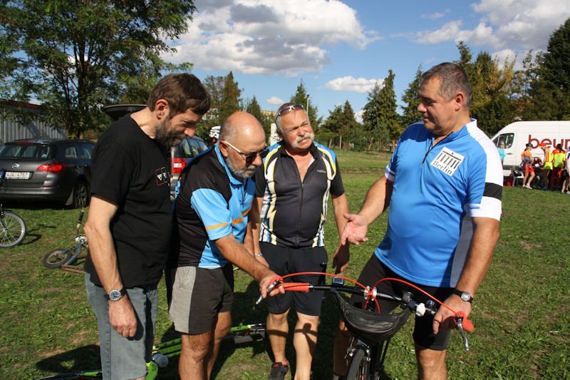 Což jsem také ještě před startem kritéria učinil a cenu jsem Vaškovi Liškovi předal, ba dokonce jsem i Milanu Jelínkovi, který na té bedně taky měl být, omluvně zamumlal něco ve smyslu „že příště už nebudu švindlovat“. Zaslechl jsem později, že prý již večer po dlouhém závodu byly podávány protesty proti výsledkům a že prý „se tam připlet nějakej Němec...“. No tak ten poněmčenej Čech to jsem byl já a tak se touto cestou ještě jednou všem omluvám. A kdybych se snad zas někdy zas chtěl drápat na bednu, tak ať někdo zařve: „Bejku, ty vole, nelez tam!“